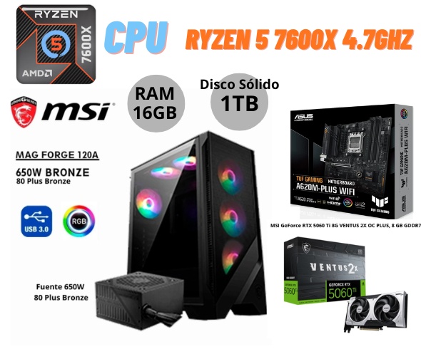 OFERTA...Computadora GAMER PROCESADOR INTEL CORE i9-12900K 3.20GHZ M.CACHE: 30MB LGA1700, Mainboard MSI B760 GAMING PLUS WIFI, Memoria TEAMGROUP T-FORCE DELTA BLACK RGB, 32GB (2x16GB) DDR5-6000MHz, Disco Sólido Kingston KC3000 1TB M.2 2280 NVMe, Tarjeta de video MSI GeForce RTX 5060 Ti 8G VENTUS 2X OC PLUS, 8 GB GDDR7 Case Gamer MSI FUENTE REAL MSI 650W 80 Plus Bronze. Sistema de Enfriamiento Liquido MSI MAG CORELIQUID A13 240 / BLACK / Cantidad de ventiladores: 2